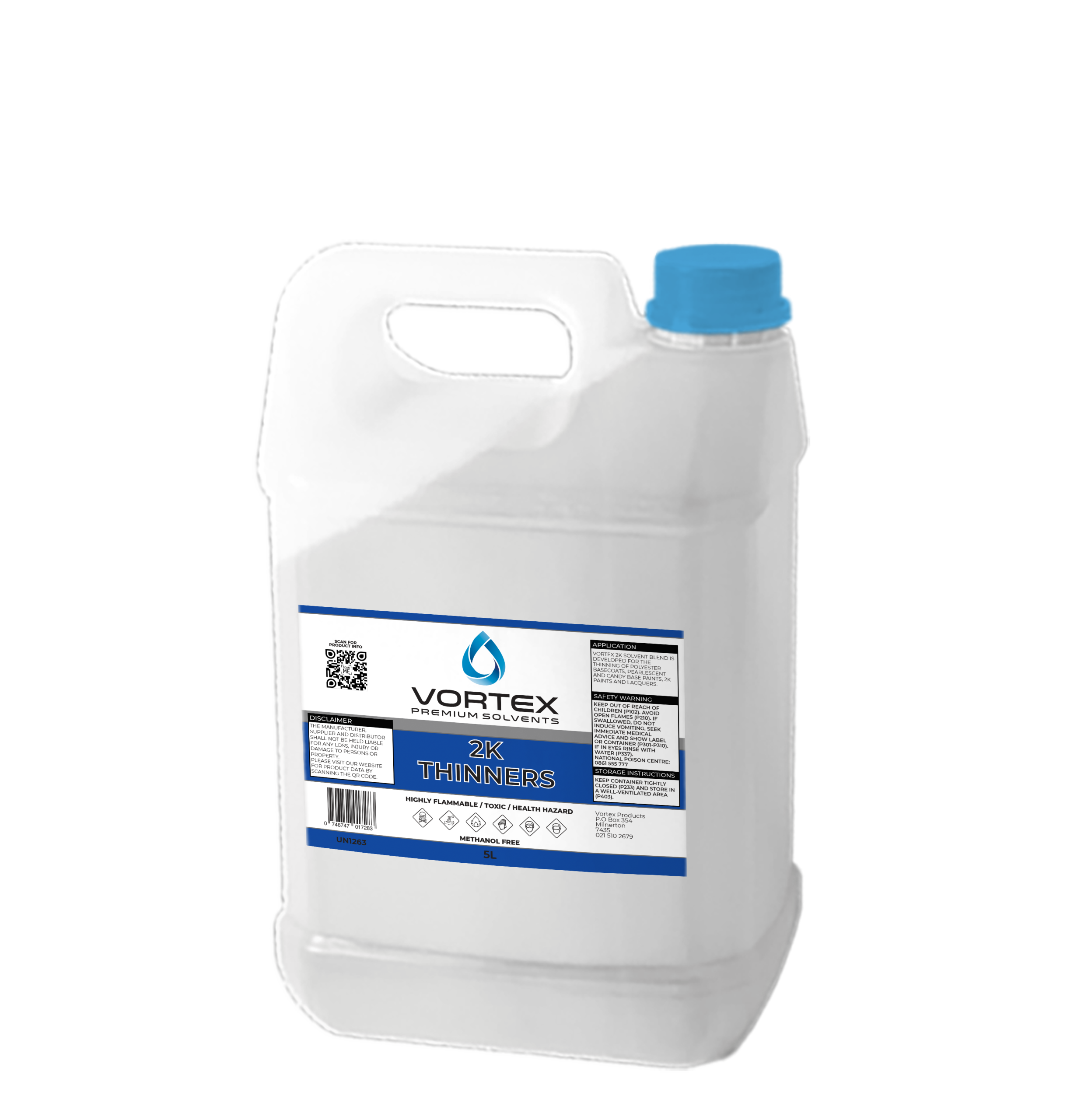 Vortex 2K Solvent Blend is a high-performance, professional-grade thinner developed for the thinning of polyester basecoats, pearlescent and candy base paints, 2K paints, and lacquers. The advanced solvent blend ensures excellent flow, controlled evaporation, and consistent atomisation for superior finish quality.