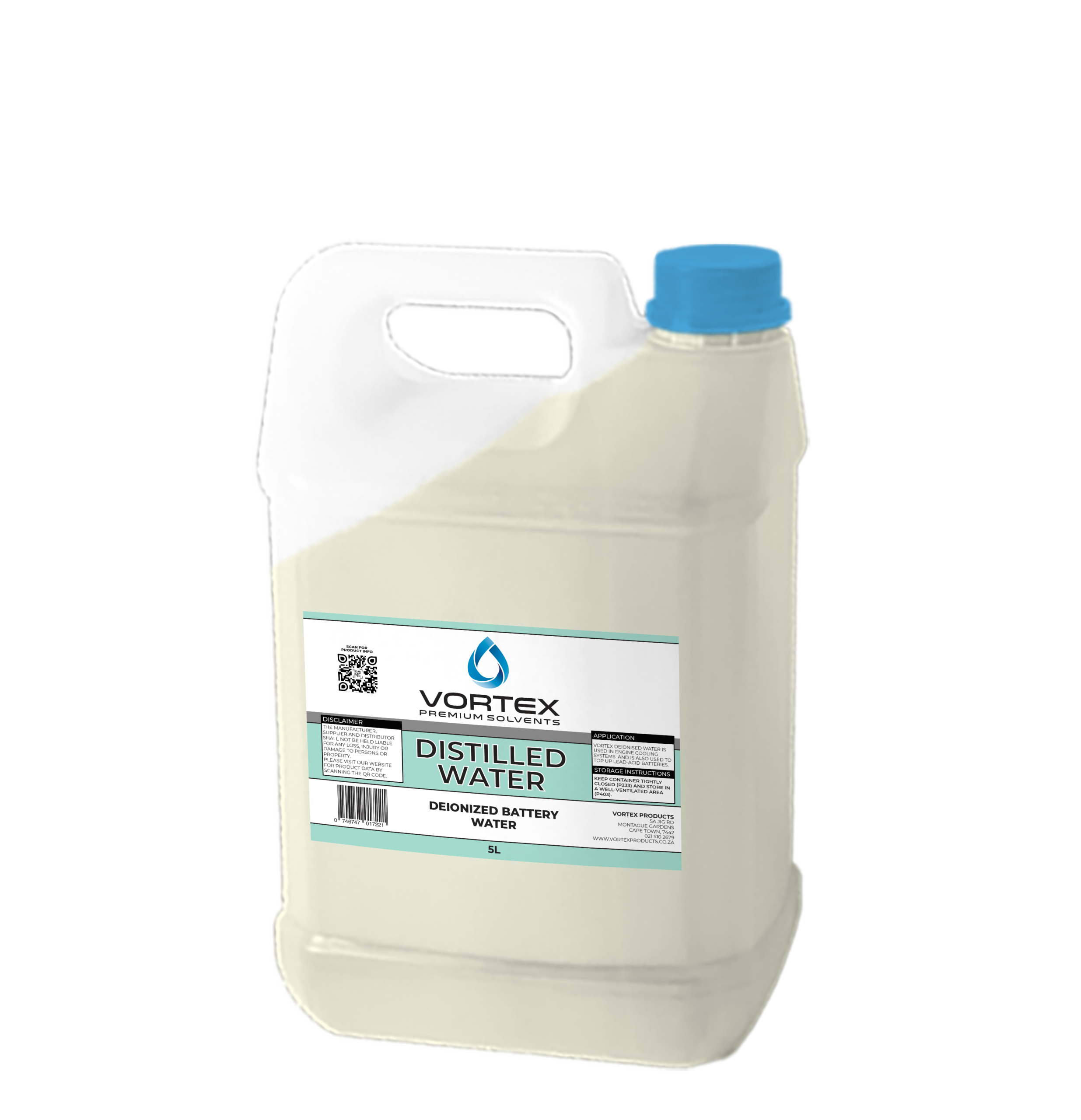 Vortex Battery Water / De-Ionised Water is high-purity water that has been processed to remove dissolved salts, minerals, and impurities. It is specifically designed for applications where contaminant-free water is essential to prevent corrosion, scaling, and electrical interference.